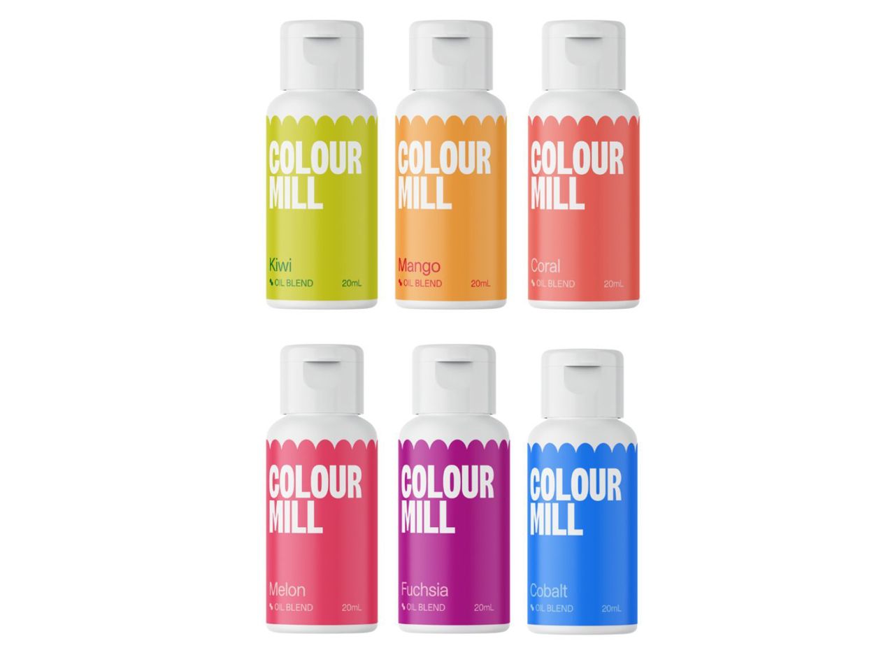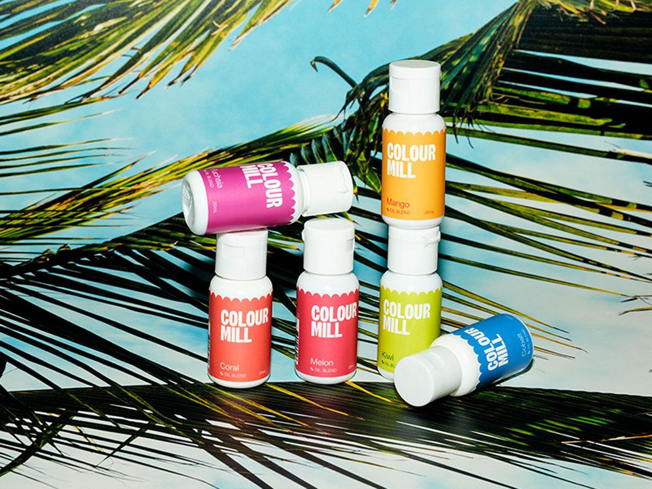 Achieve flawless, vibrant, and beautiful tropical-themed colors on your cake designs, using the oil-based food colour Tropical Set from Colour Mill. Colour Mill Oil Blends allow the colour to disperse through every part of a fat-rich medium, including the sugar, eggs, and butter. This is because all water-based materials have been removed and replaced with bake & cake friendly oils; these oils mix through much better than water-based gels (which we know water repels from the oils in your baking).