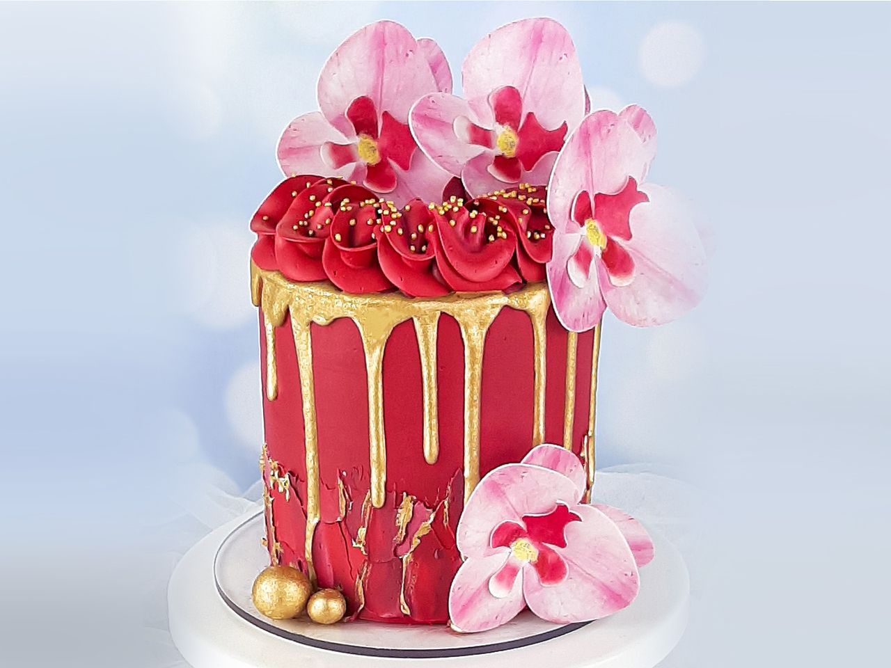 Perfect for decorating cakes, cupcakes and other creations. Simply place on the finished treats and you're done. These beautiful wafer paper orchids embellish your cakes with a beautiful colourful look.